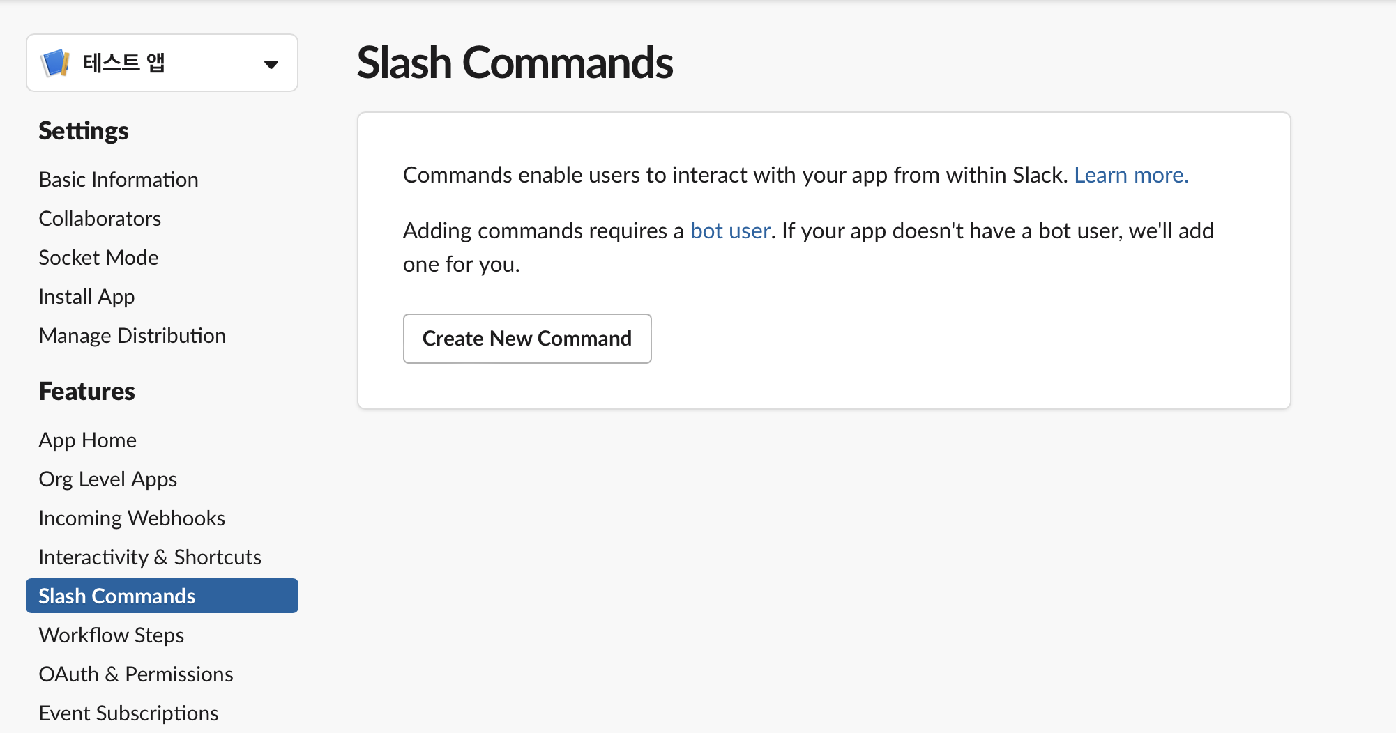 슬랙 -> 서버로 요청 보내기 (Slack API를 통해 요청 보내기)