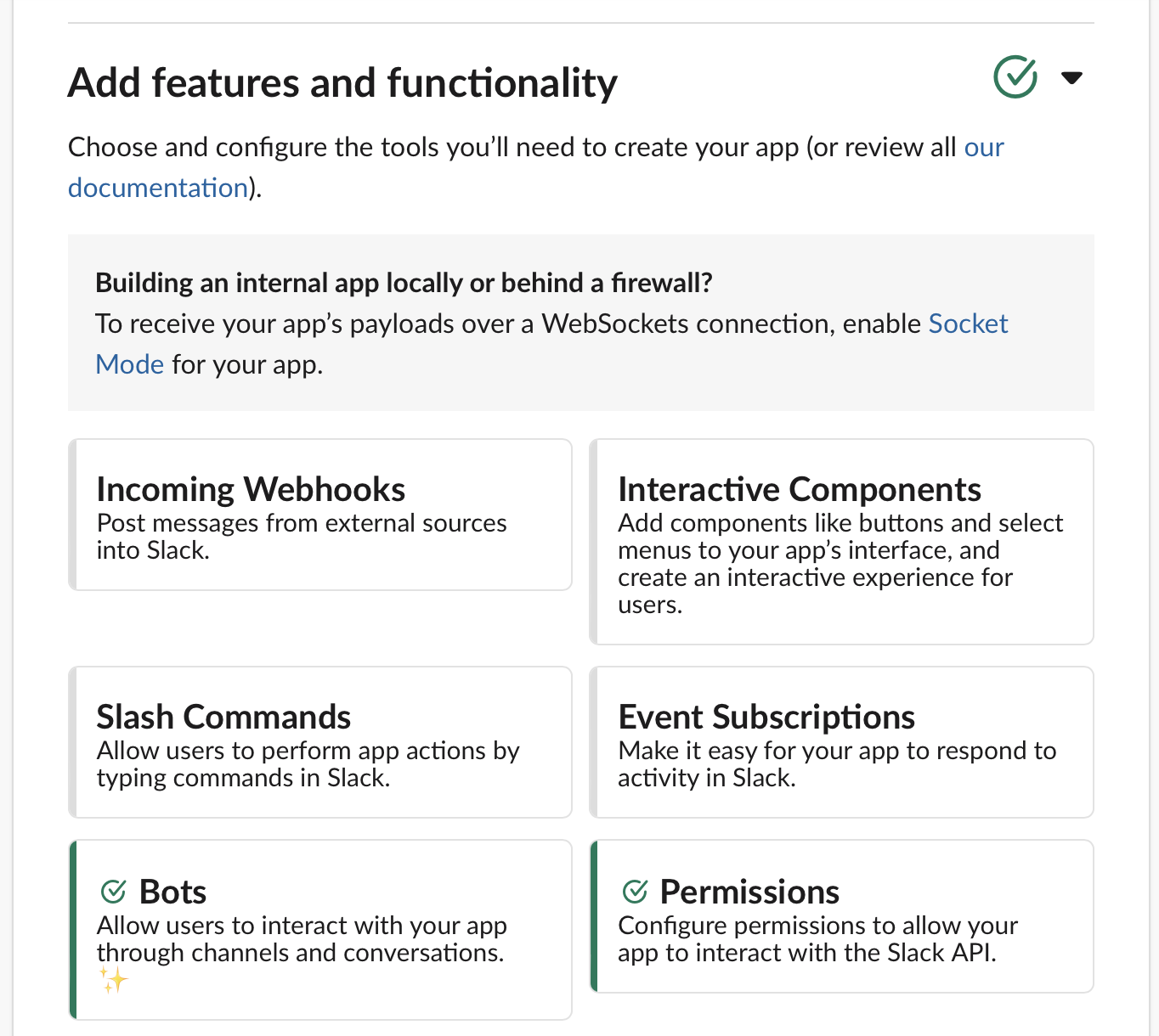 - 해당 게시글에선 슬래쉬 커맨드와 멘션 기능을 활성화하기 위해 두개를 선택합니다.
