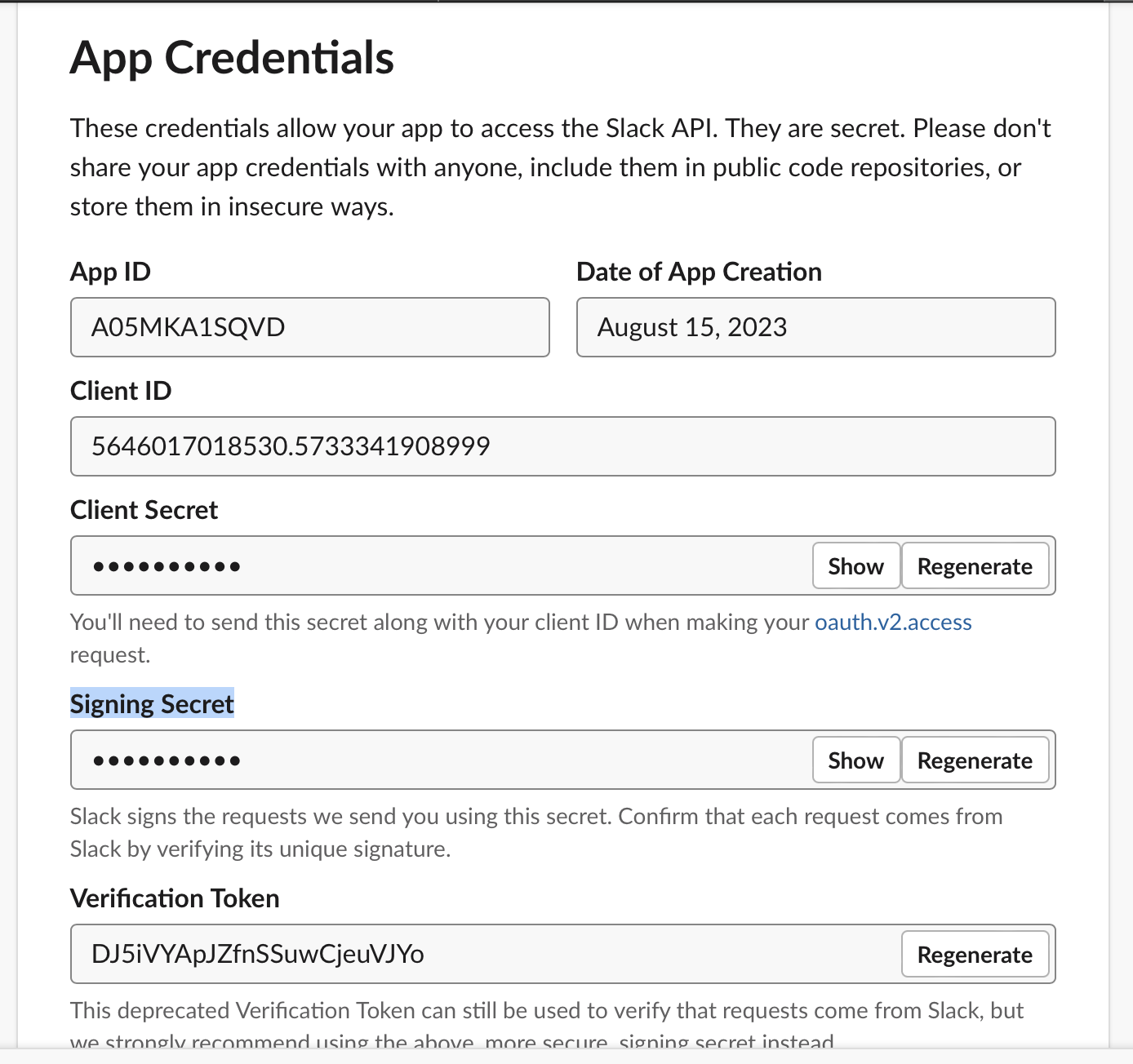 Signing Secret 확인하기