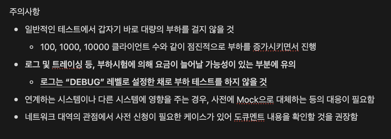부하 테스트라 하면 그냥 스트레스를 준다 정도의 개념만 생각했는데요, 다양한 테스트 방법이 있기도 하고 실제 환경이라면 여러가지 테스트들을 진행해봐야 한다는 것도 알게 되었습니다.
