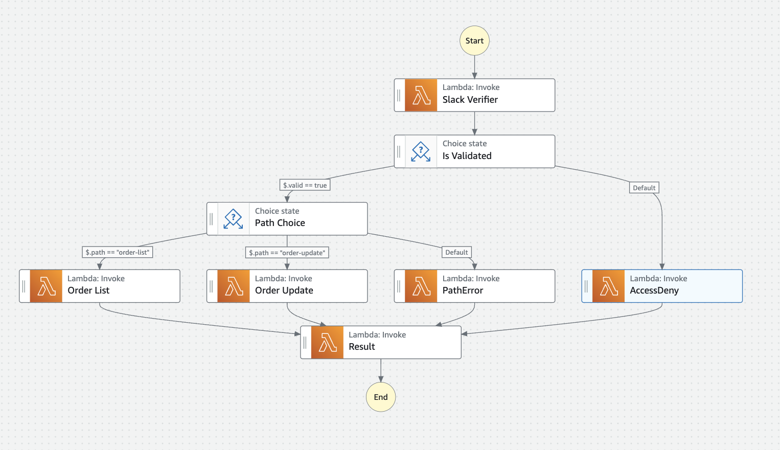 Slack Verifier에서는 ValidateFunction을 호출하고, 인증이 완료되면 반환값 Payload에 valid == true와 함께 HTTP Method, path, 기타 파라미터를 넘겨주도록 하겠다.
