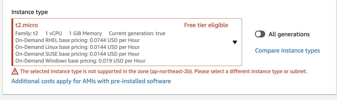2023/11/23 기준 ap-northeast-2b에는 t2.micro가 안된단다.