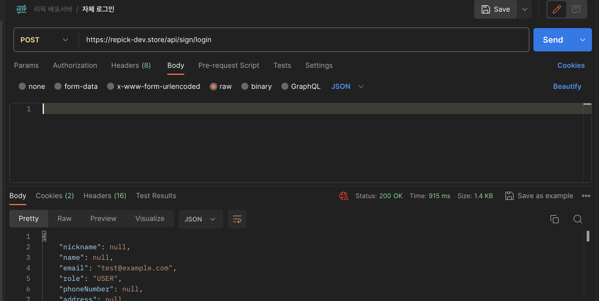이제 db를 private 환경으로 옮겼으니 dev서버의 ec2에서 api를 쏴본다.