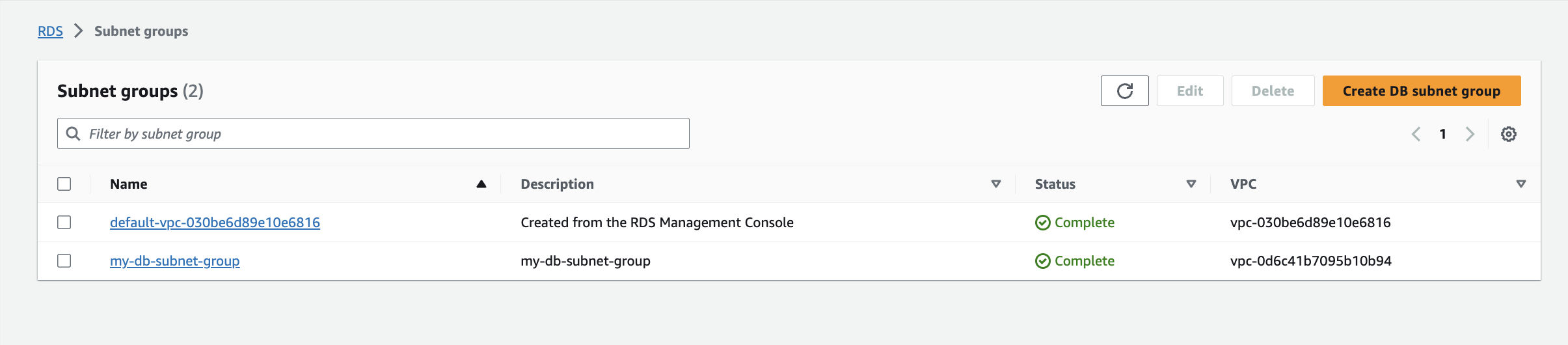 나는 db가 ap-northeast-2d에 있으므로 2d를 포함시킨 subnet을 만들고, 이에 따른 db subnet group을 만들어 연결시켰다.