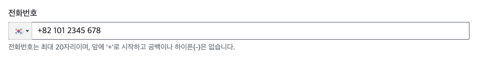 010-1234-5678 의 번호를 등록하는 경우, +821012345678 으로 등록해야 하는데,