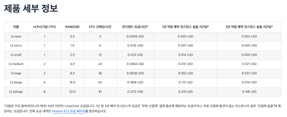 t2.micro의 스펙을 한 번 살펴보겠습니다.
