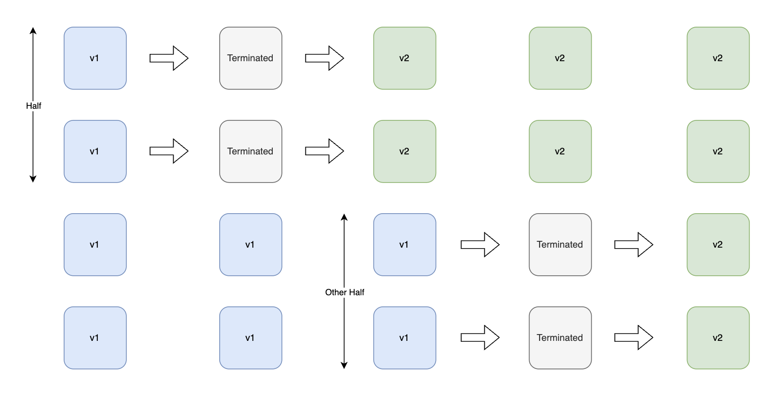 - 예: Canary 10Percent5Minutes - 10퍼센트의 task가 5분간 안정적이면 모든 버전을 업데이트