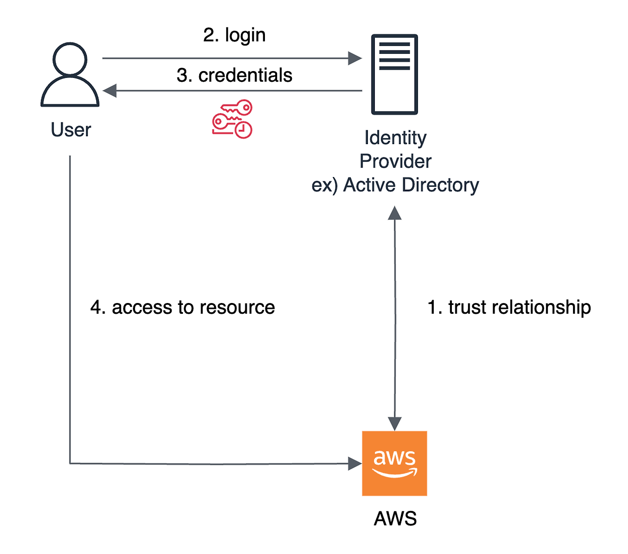 - AWS와 Identity Provider 간 trust relationship 을 형성합니다.