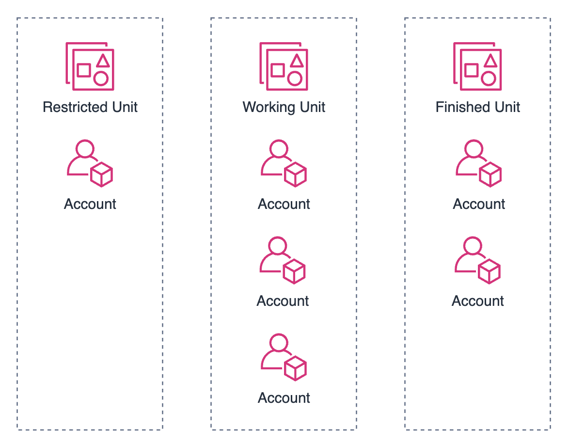 ACC Hongik의 Organization Unit은 다음과 같이 Restricted, Working, Finished 유닛들을 가집니다.