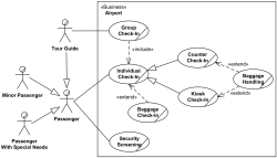 - Describe user flow — expand each use case through flow of events. Each event contians action and data.