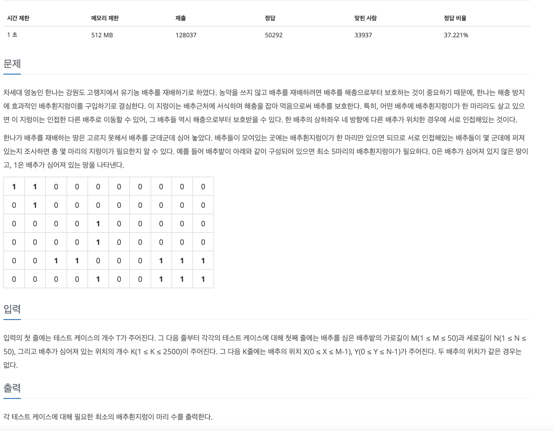 (근거 : N, M 은 50보다 작으므로 최대 크기는 2500입니다. 시간 초과 문제는 없을겁니다.)