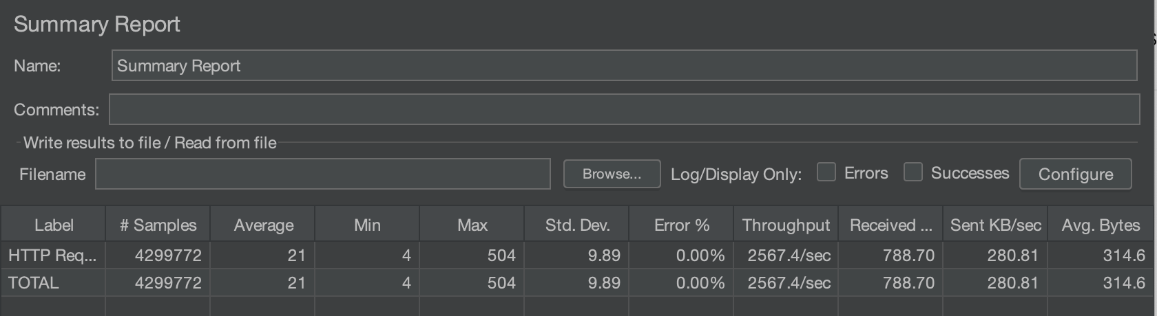 Throughput : 2567.4/sec의 지표를 확인할 수 있었습니다.