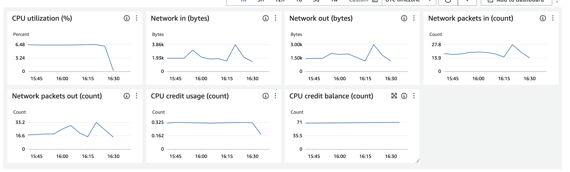 - Network in / out 은 상승하지 않았습니다. I/O작업을 수행하지 않았기에 예상된 결과입니다. (중간에 상승한 것은 접속하여 stress 설치할 때 사용한 리소스로 추정됩니다.)