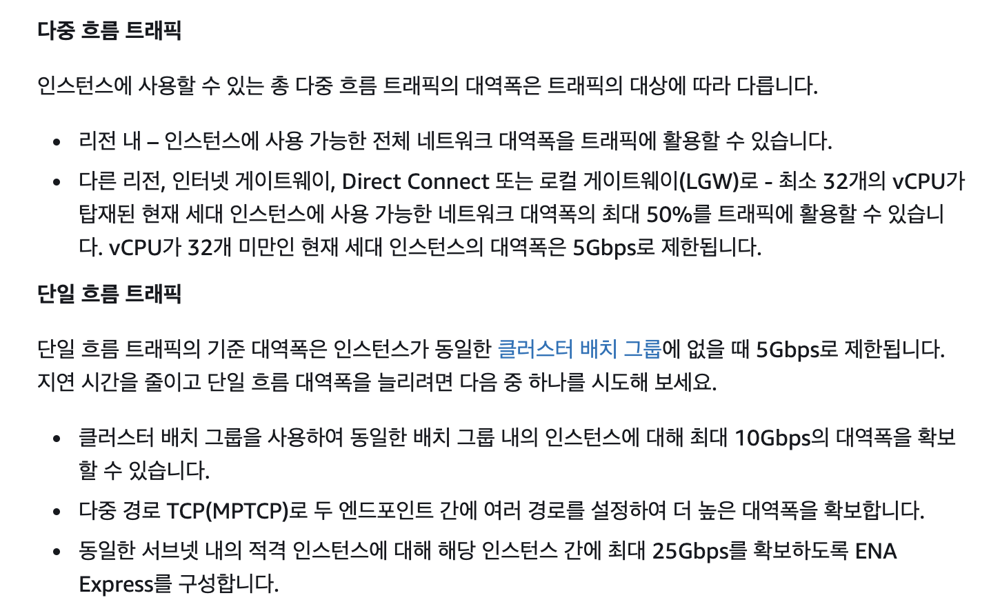 (다행히도) 단일 흐름 트래픽 제한 == 다중 흐름 트래픽 제한으로, 5Gbps의 제한이 있습니다. 그런데 저희가 Jmeter 부하 테스트로 5Gbps를 다 사용하는 것은 꽤 어려운 일일 것으로 예상됩니다. (초당 625MB의 데이터를 전송해야 합니다.)